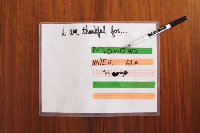 /We are definitely looking forward to this weekend! It'll be the first weekend in a while that I won't be enveloped in blog design. Finally, it's finished and out there and I love it. Before we sign off for the next few days, here is one more fun DIY that is perfect for Thanksgiving next week! This placemat is perfect for helping the kids understand a little better of what Thanksgiving is all about! Let them decide what they are grateful for and write or draw it onto the placemat. And of course, it's laminated so they can erase and be thankful over and over. Pretty great right? Check out all the details over here on Momtastic.