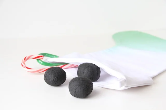 It wouldn't be a holiday without a surprise ball, right? These are so very easy to make and you can just plop them right into the stocking for easy gifting. What I really love about these surprise balls is because they are lumps of coal, they don't have to be perfect! In fact if they are too perfect, they wouldn't look like coal. Awesome. These might be my favorite surprise ball DIY to date. If you would like the step by step, you can see the how to over here. Basically, you just cut up thin strips of black crepe paper folds and one by one wrap your little gifts inside. They are always a blast to unravel and I think they would be perfect for stockings. Especially if your little ones are a teensy bit naughty. With these they get a lump of coal and a treat! It's a win, win all around.
