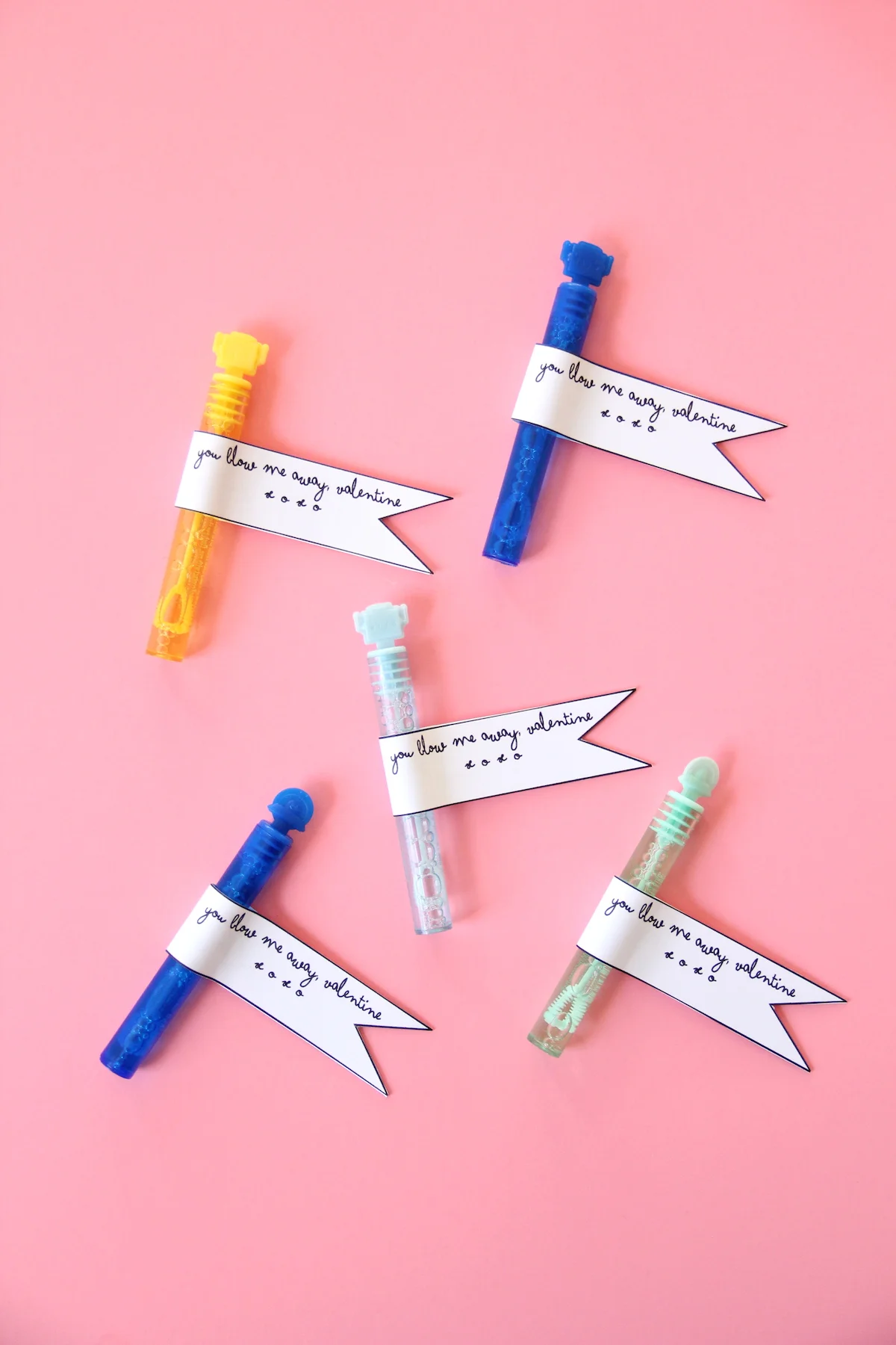 /What kid doesn't love bubbles? Like really love them. These valentines are perfect for giving out to all of your kid's little friends at school. I bought these cute bubbles at Target, 24 for $3! It doesn't get much better than that. You can download these little tags right here. Just print, cut them out and use double sided tape to attach them. So easy and so much better than lame store-bought valentines, right? Right. Your little ones can sign their name beneath the XOXO, so their friends know who's mom to thank for the rad Valentines! At least that's my goal here. Ha!