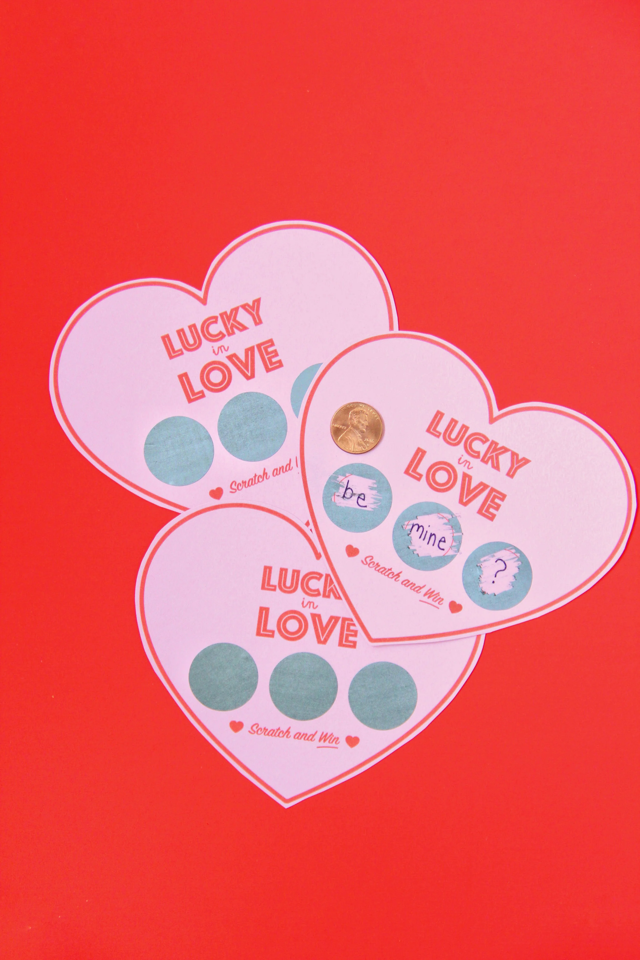 /You know when you have an idea and you get down-right giddy thinking about it? That was me with these Valentines! I love the fun lotto ticket feel these have - and no, I don't condone gambling! Ha! These are perfect for handing out to little friends and classmates. You can attach a small treat to the back if you want too! Kids will LOVE getting these. The thrill of scratching off those dots to see if you're a winner is just the best! And making them is easy peasy. Just download the cards here, print onto your choice of colored cardstock, cut them out, write in a secret message for your valentine, stick on the scratch off stickers and you're good to go! Have fun and good luck not putting these stickers on everything you see!