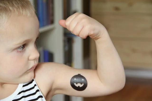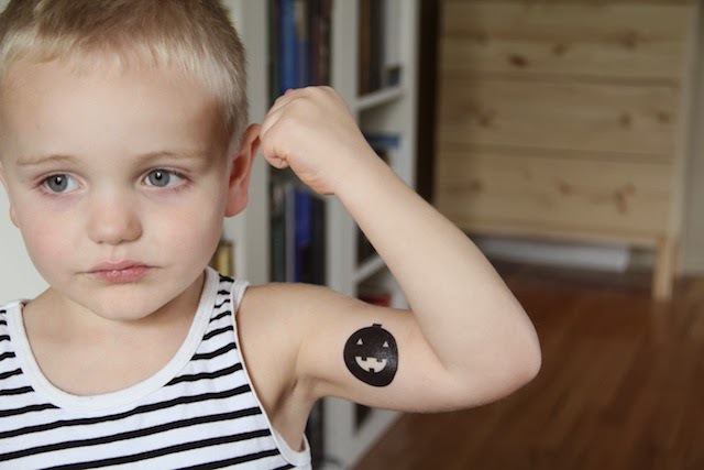 Blowing is optional. My favorite is the ghost, but that jack-o-lantern on a little boy bicep is pretty adorable too. Again, you can download the spooktacular tattoos here. While we want you to enjoy the heck out of these, they are for personal use only. Thanks!