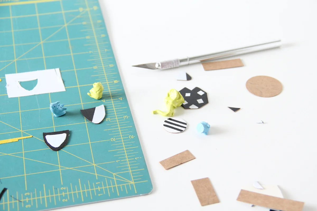 First, let's decapitate our animals. Ha! I used an X-acto knife to get a clean cut.