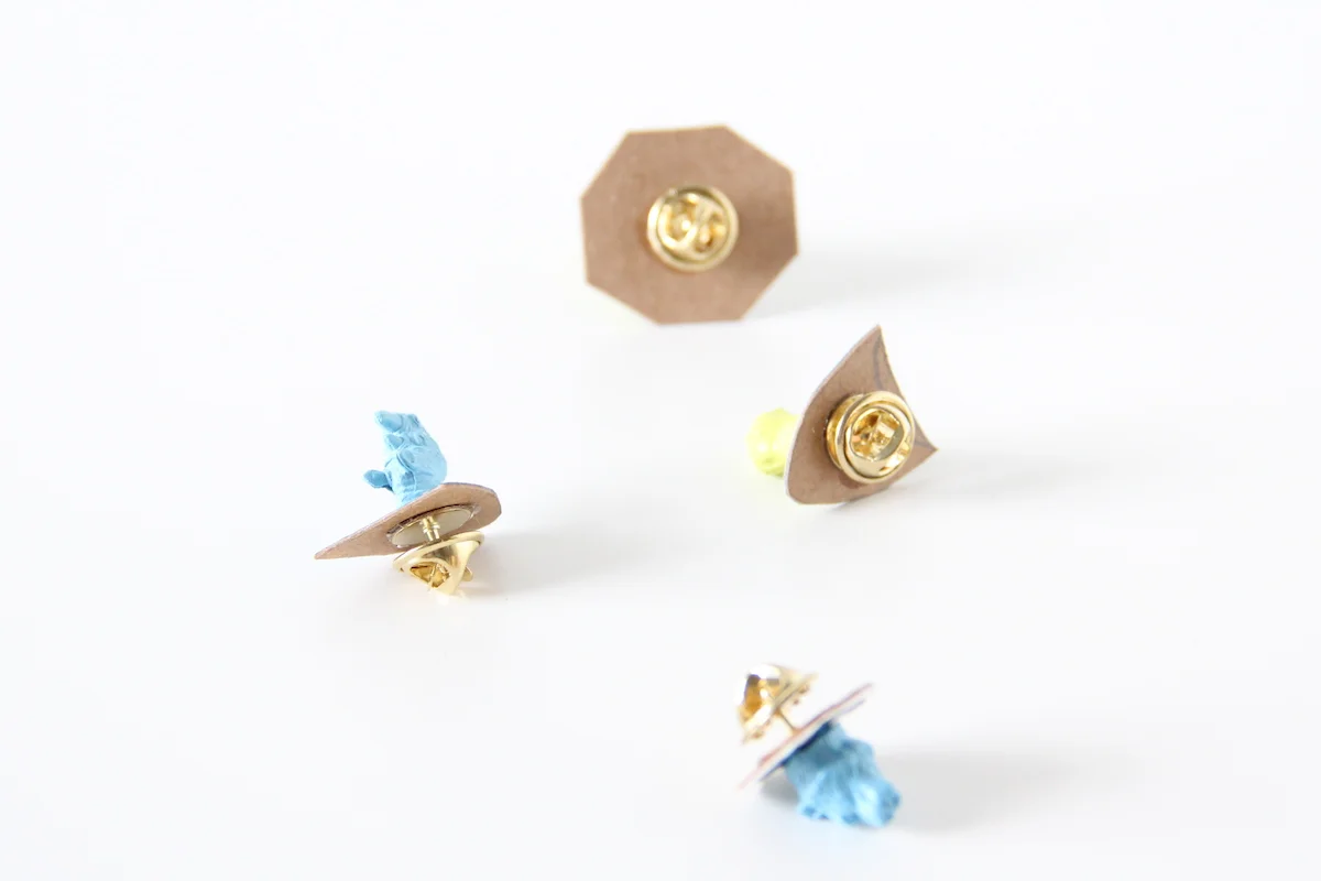 Now let's add the pins. Use that same strong glue and glue them onto the backs. Make sure they are totally and completely dry before you use them! Once they are dry, you are done!