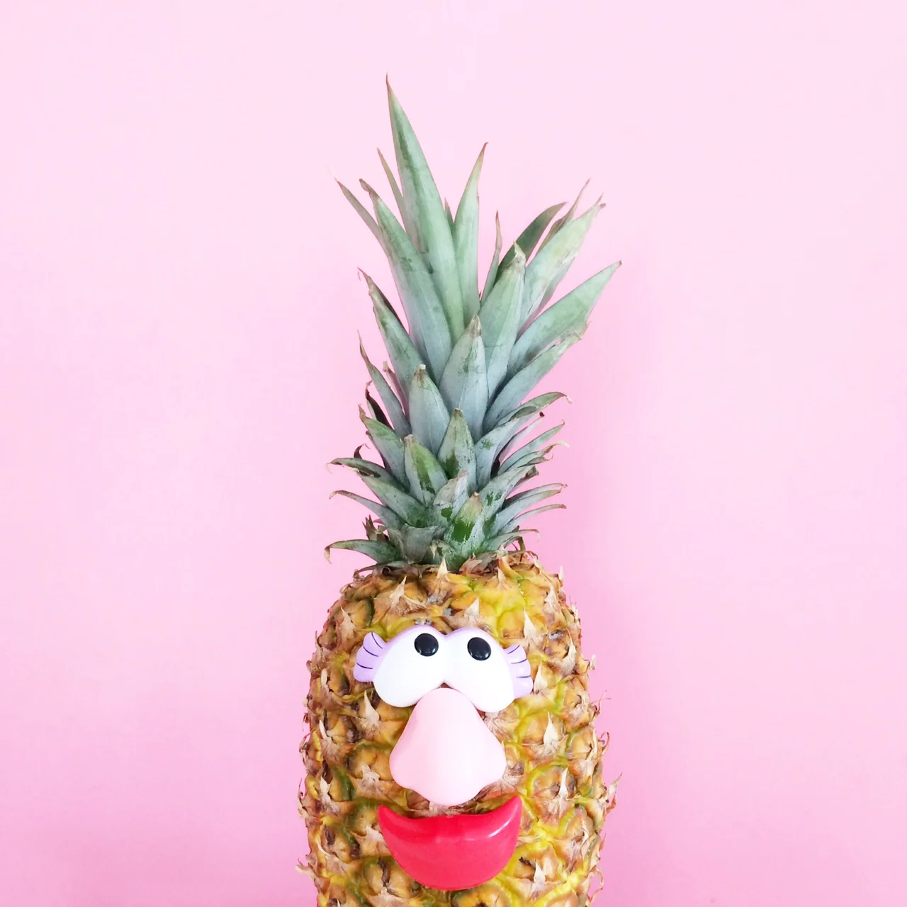 /I think we would all agree, pineapples are better than potatoes right? Right. If you want to have some fun with the kiddos today, grab a pineapple (or another large fruit) and dress it up! We got a kick out of this. But I have to warn you, cutting and eating it afterwards is a little disturbing. Still, totally worth it. Have fun!
