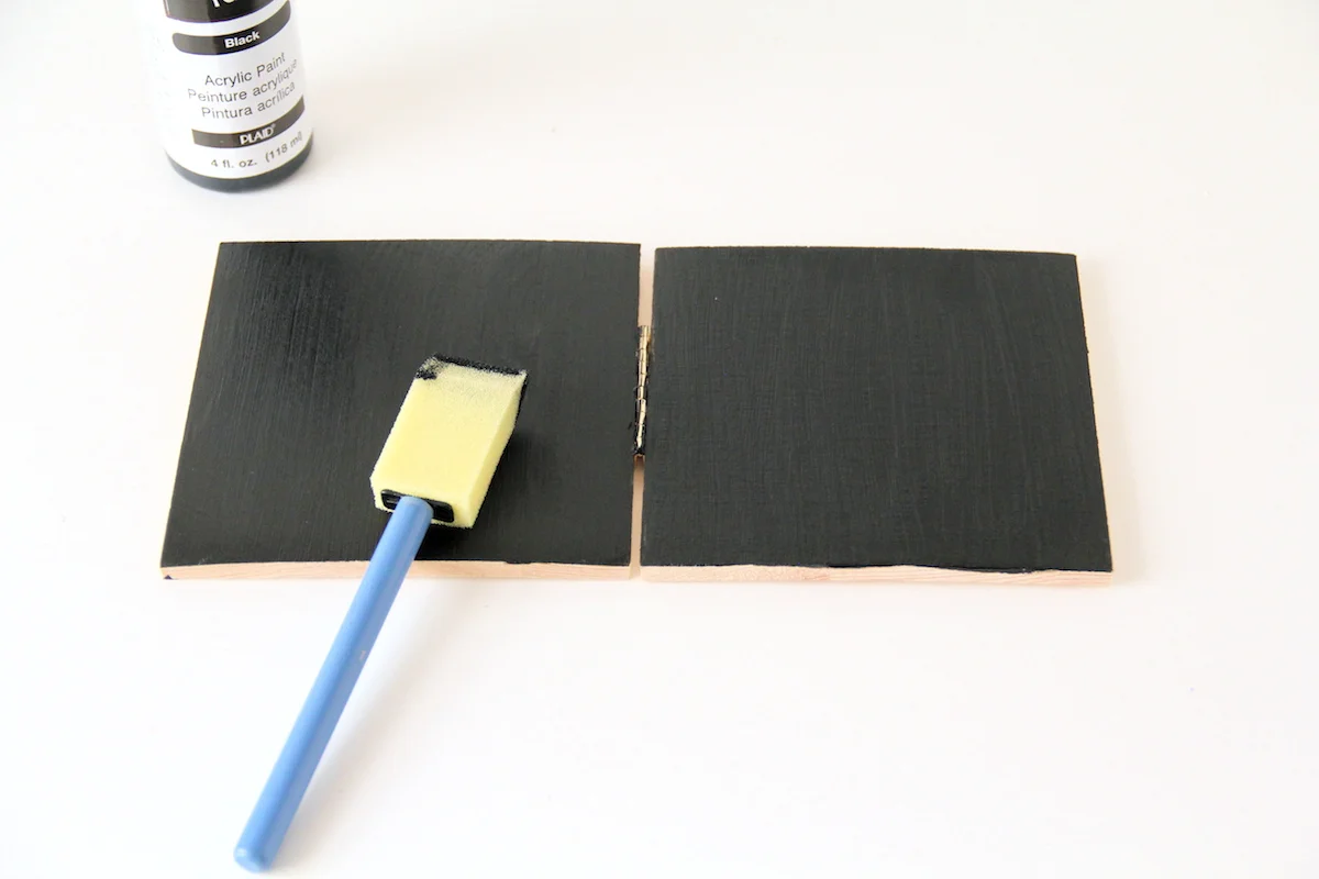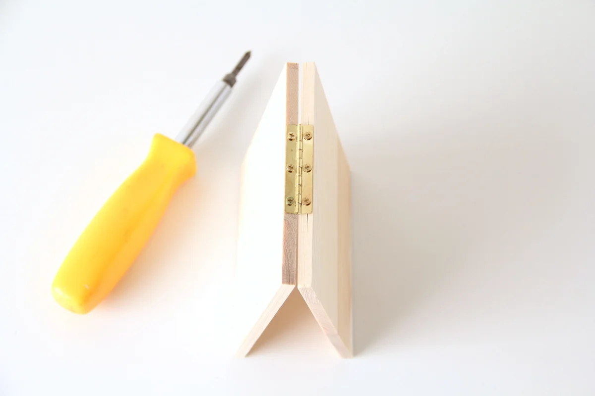 Before we get started, please oh please don't be intimidated by this. The wood was bought at the craft store and the hinge was too! Just line it up and screw it together. It's easier than you think!