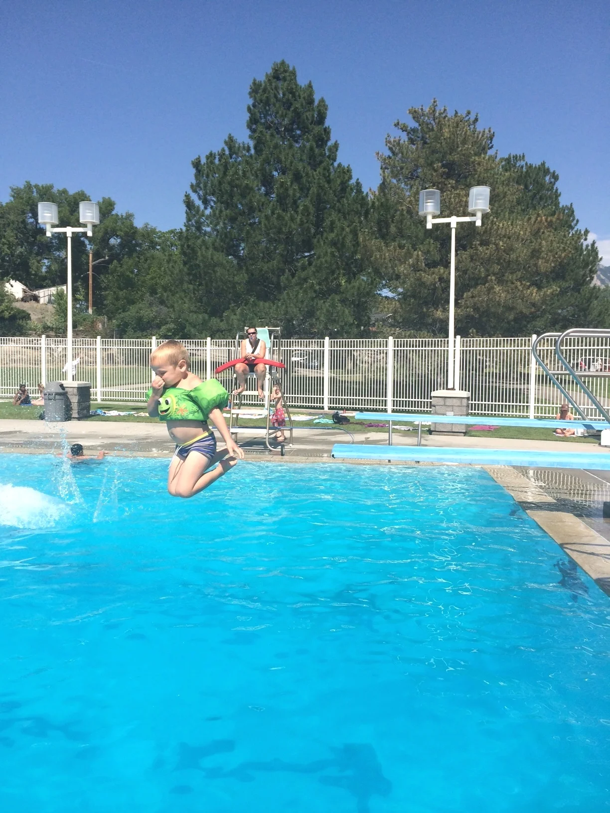 Ok, so this didn't happen on the 4th, but I had to include it! On Saturday, we went to the pool and well, the photo explains it all. My boy overcame his fear and jumped off of the diving board! After he went the first time, that was it. He went over and over and over until the pool closed. It was awesome! I was one proud mama and I can't wait to go back and watching him do it again, and again. I hope you all had a wonderful Independence Day!